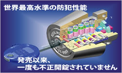 ダブルピン機構と世界初のデッドロック式の特殊ピン機構を併せ持つ、新しいシリンダー構造により、ピッキングやバンピングを完全にシャットアウト。